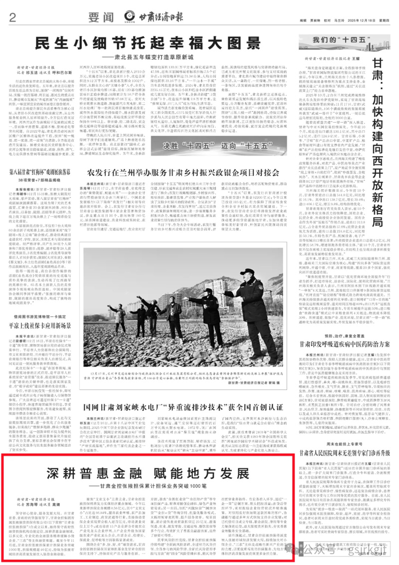 媒體關注 | 深耕普惠金融 賦能地方發展——甘肅金控張掖擔保累計擔保業務突破1000筆