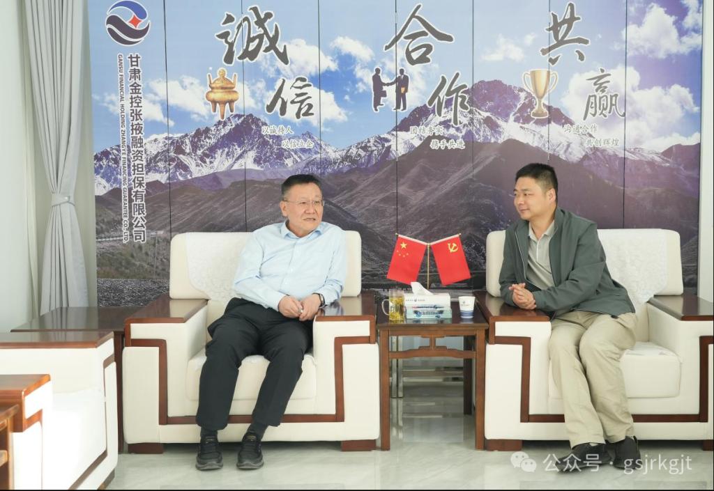 近日,金控張掖擔保公司黨支部書記、董事長李學云與來訪的甘肅興旅文化旅游有限公司董事長李得超一行舉行交流座談。